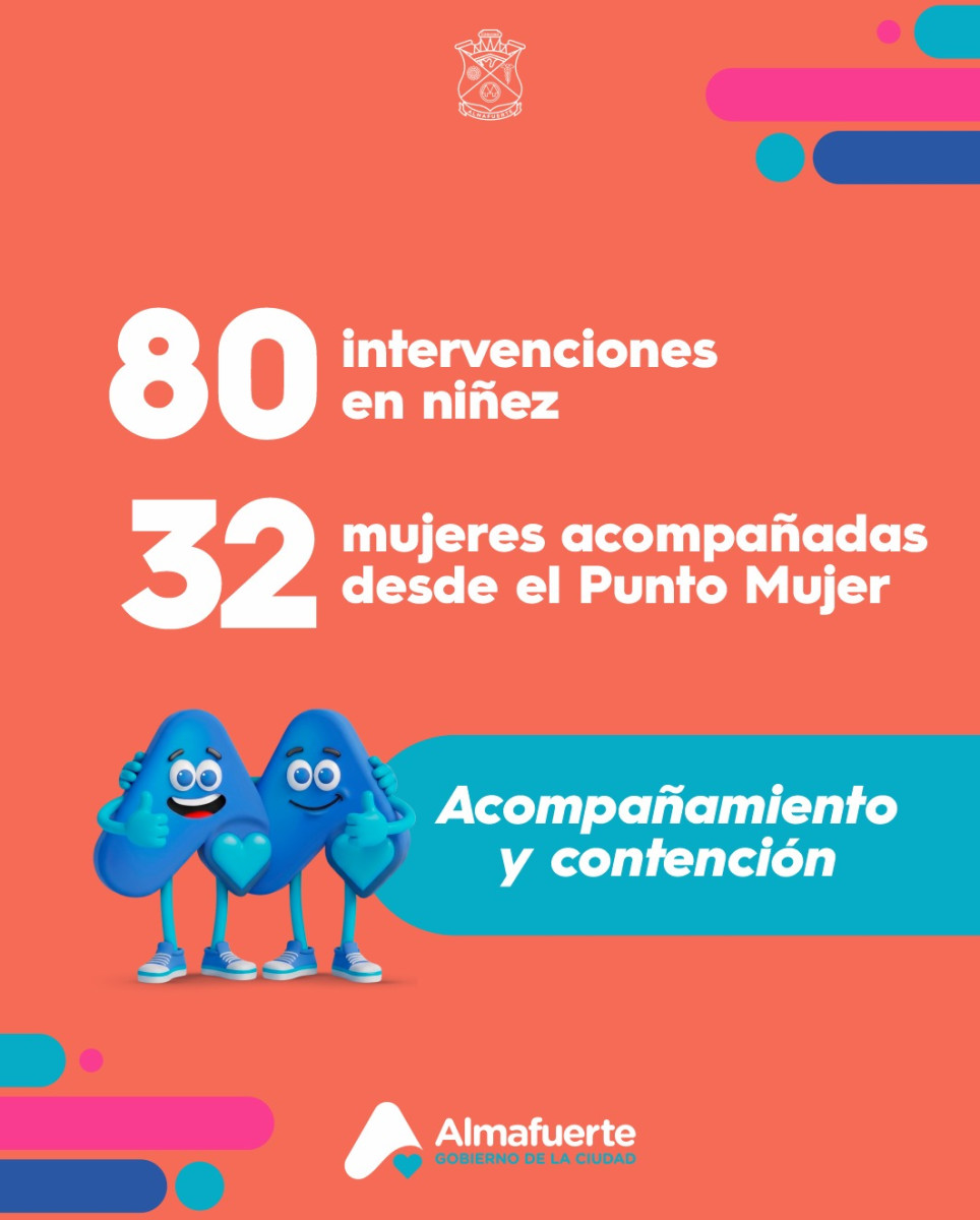 En materia de niñez, se llevaron adelante 80 intervenciones, mientras que 32 mujeres fueron acompañadas desde el Punto Mujer, brindando contención, orientación y asistencia.