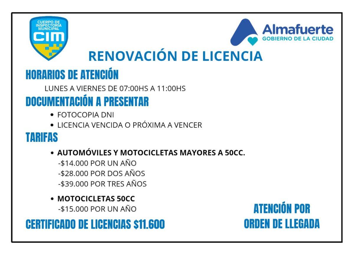 También se encuentra el área de emisión de LICENCIAS DE CONDUCIR, con las correspondientes evaluaciones para obtener el carnet de conducir por primera vez y a partir de los 70 años, las mismas son escritas y prácticas.